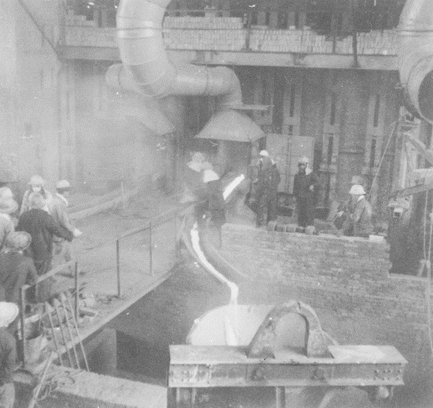 1960年4月6日,中色大冶迎來了第一代爐——反射爐點火的神圣時刻;4月22日下午2點,第一包冰銅放滿;4月23日,冶煉廠反射爐順利放出第一爐冰銅。