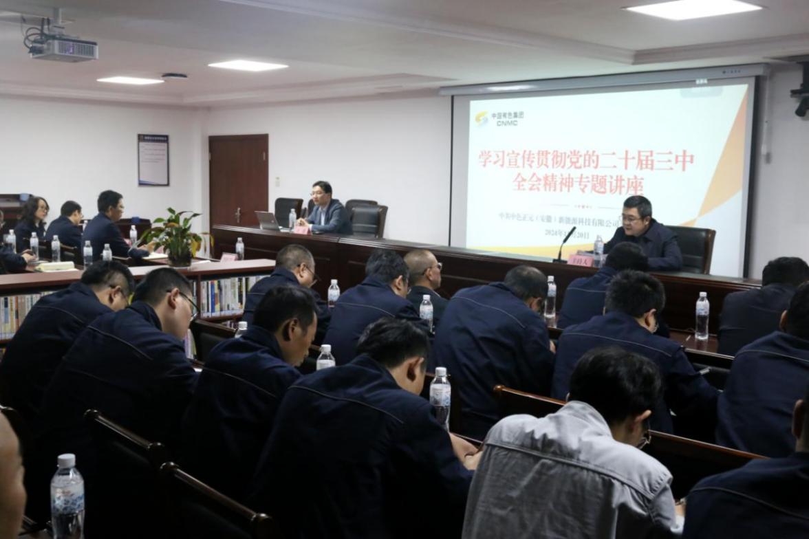 為深入學(xué)習(xí)宣傳貫徹黨的二十屆三中全會(huì)精神,準(zhǔn)確把握全會(huì)精神實(shí)質(zhì)和豐富內(nèi)涵,推動(dòng)各項(xiàng)貫徹落實(shí)工作走深走實(shí),11月20日,中國(guó)有色集團(tuán)出資企業(yè)中色正元(安徽)新能源科技有限公司(簡(jiǎn)稱:中色正元)黨委邀請(qǐng)中共中央黨校(國(guó)家行政學(xué)院)法學(xué)博士、中共安徽省委黨校(安徽行政學(xué)院)副教授于德作專題輔導(dǎo)講座。