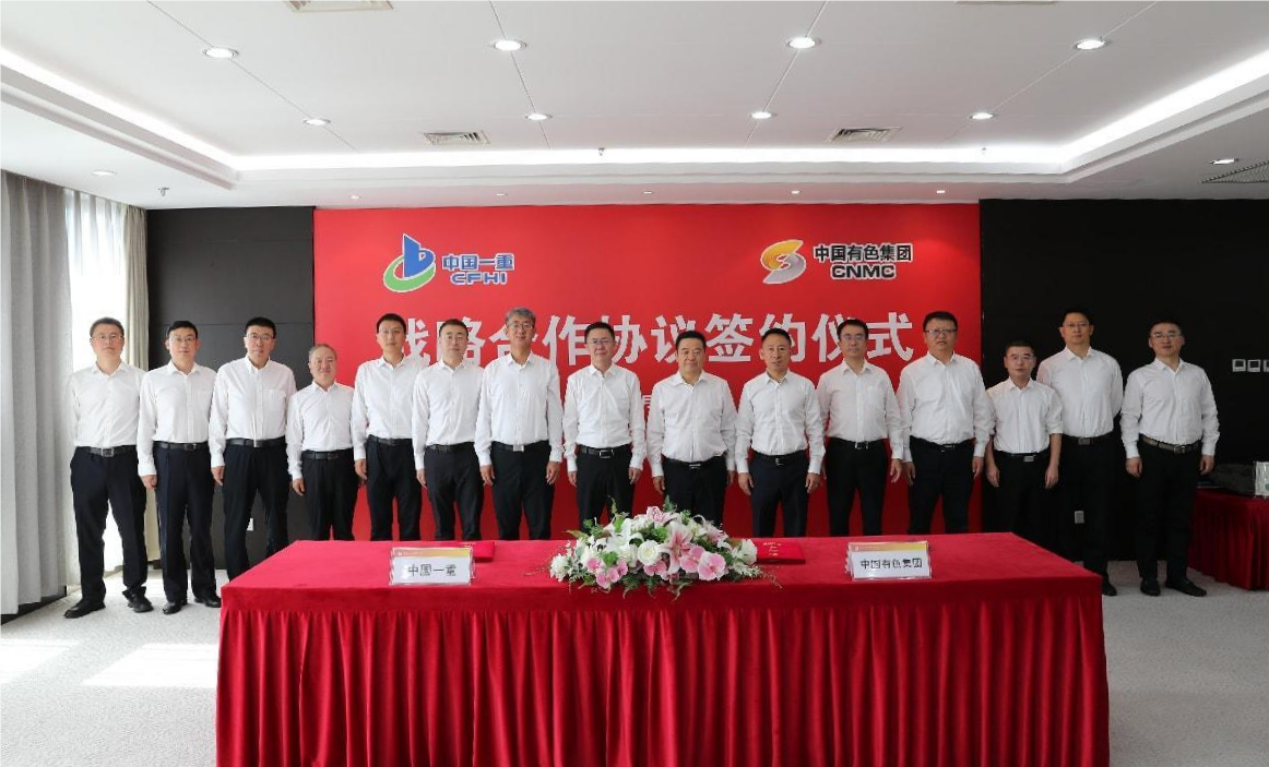 9月26日,中國有色集團與中國一重簽署戰略合作協議,中國有色集團黨委書記、董事長文崗,中國一重集團黨委書記、董事長呂智強現場見證簽約。中國有色集團黨委委員、副總經理王焱,中國一重集團黨委常委、副總經理張皓代表雙方簽約。