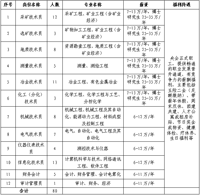 通過提供卓越的職業(yè)發(fā)展晉升通道、有競爭力的薪酬體系、多樣化的福利補貼,招聘選拔培養(yǎng)一批高度契合公司價值觀、真正熟悉有色行業(yè)技術(shù)和業(yè)務(wù)、推動并實現(xiàn)戰(zhàn)略落地的后備干部管理者。