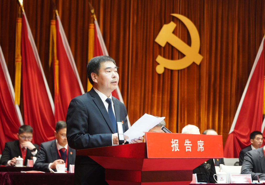 公司黨委書記、董事長胡國斌代表公司黨委作題為《堅持長期主義? 聚焦兩端發力? 為建設“優高美強好”新有色團結奮斗》的工作報告。