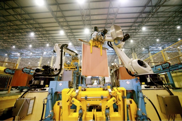 30萬噸銅加工清潔生產(chǎn)示范項目采用世界上最先進的永久不銹鋼陰極電解工藝,實現(xiàn)產(chǎn)品全流程自動化生產(chǎn),節(jié)能減排效果得到顯著提升,技術(shù)經(jīng)濟指標及技術(shù)裝備達到國內(nèi)領(lǐng)先、世界一流水平。